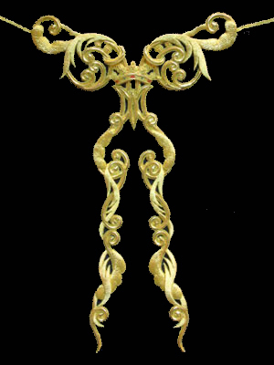 • CÍNGULO DE SALIDA: realizado en oro a realce y hojillas de oro por Francisco Carrera Iglesias, según idea de Carlos López Montañez. Se estrenó en el año 2007, durante la procesión a la Catedral para presidir el Pregón de las Glorias de Sevilla.