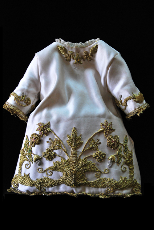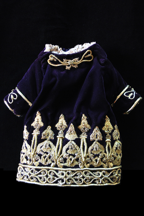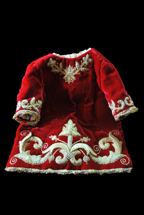• TÚNICAS DEL NIÑO JESÚS: posee tres túnica bordadas: en blanco, en rojo y en azul oscuro. Esta última es la más rica de todas. Su autora fue Fidelia Tercero Valero (año 2000), quien la recamó con una vistosa mixtura de realce y hojilla. La donó la Hermandad de Ntra. Sra. de la Victoria de Manzanilla (Huelva). Además posee otras túnicas sin bordar pero en tejidos ricos y escogidos.